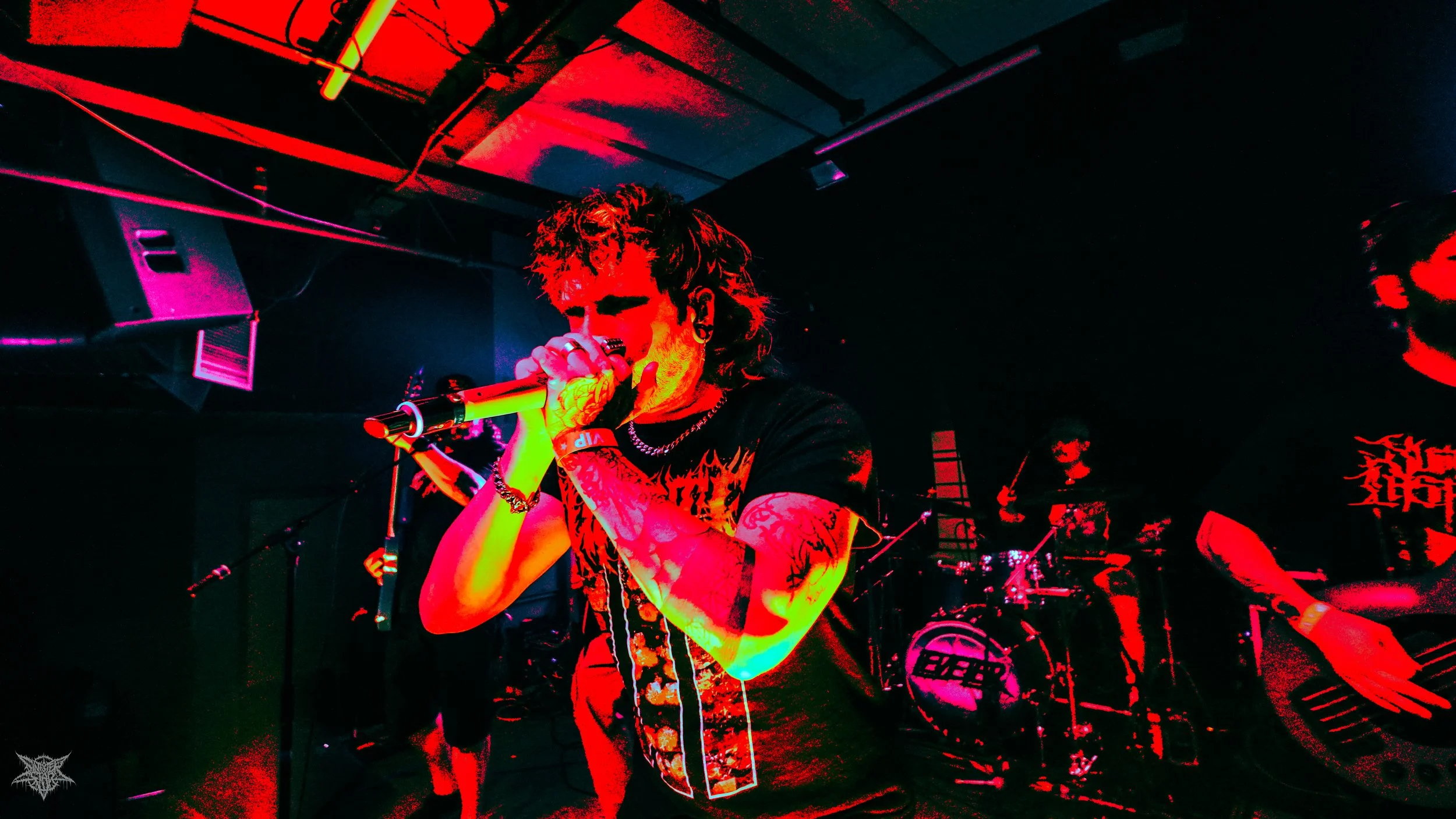 A stylized logo of the word "Never" in yellow with red and cyan outlines resembling a 1980s computer or video game aesthetic.