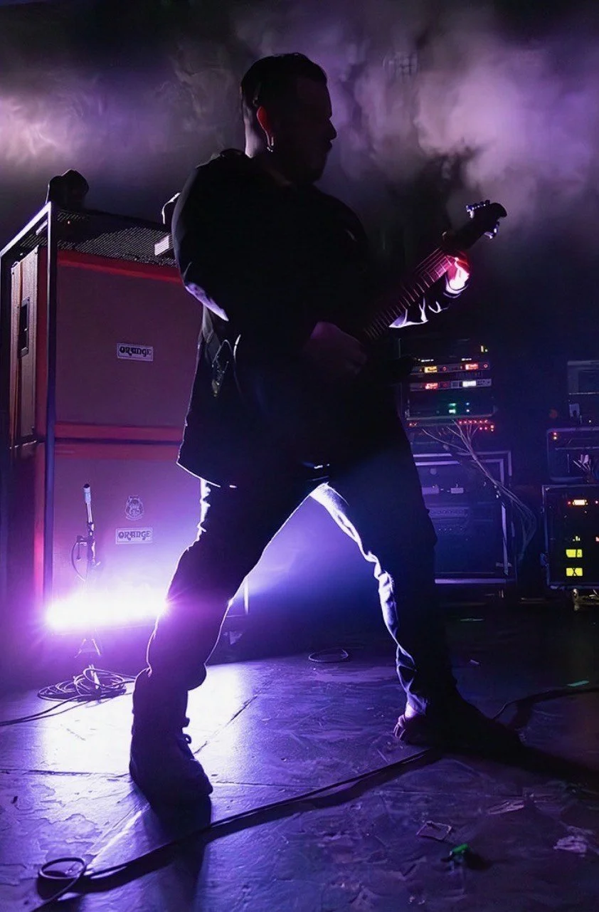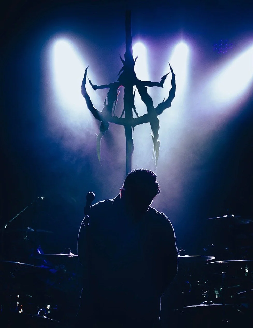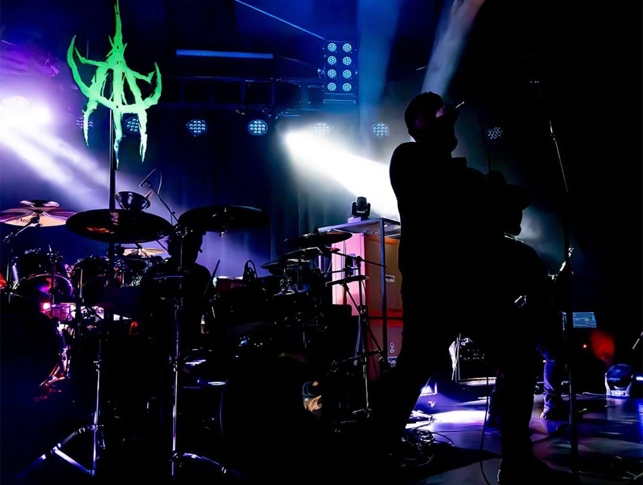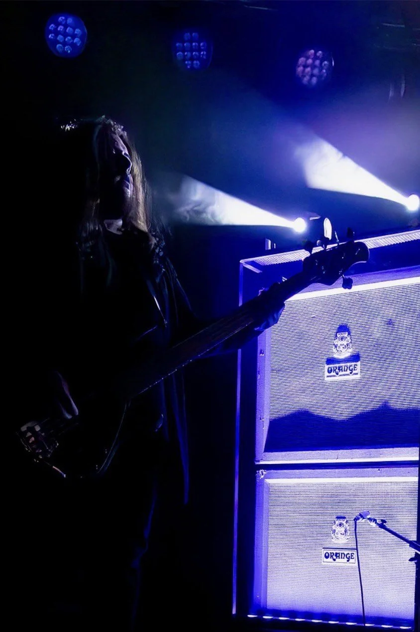 Black and white logo with intricate, gothic-style text that is difficult to read.